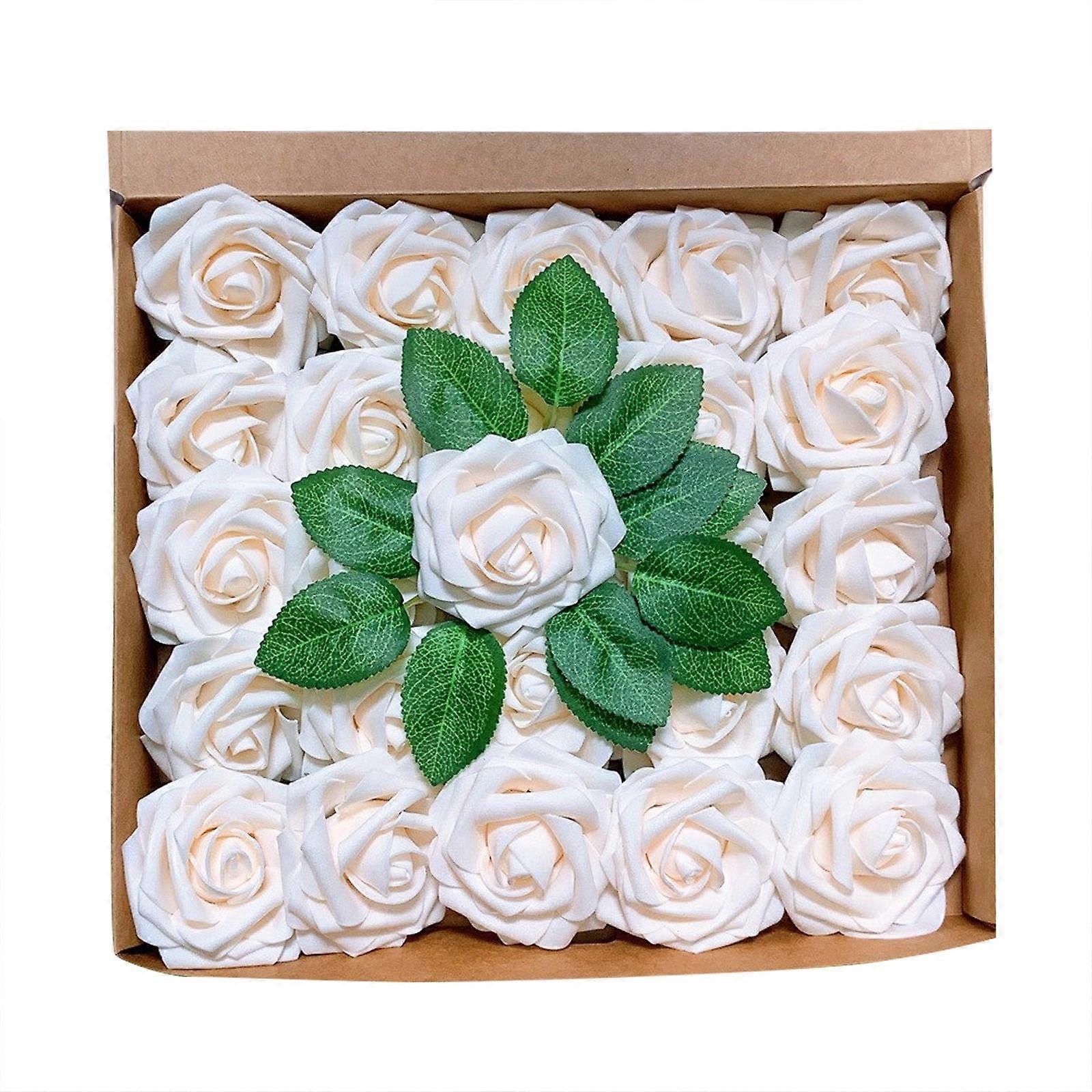 XIUH Home Decoration Artificial Gift Box 8cm Rose Simulation Rose Plus Leaf Belt Rod 25 Flowers Packed Pe Rose Head (AB)