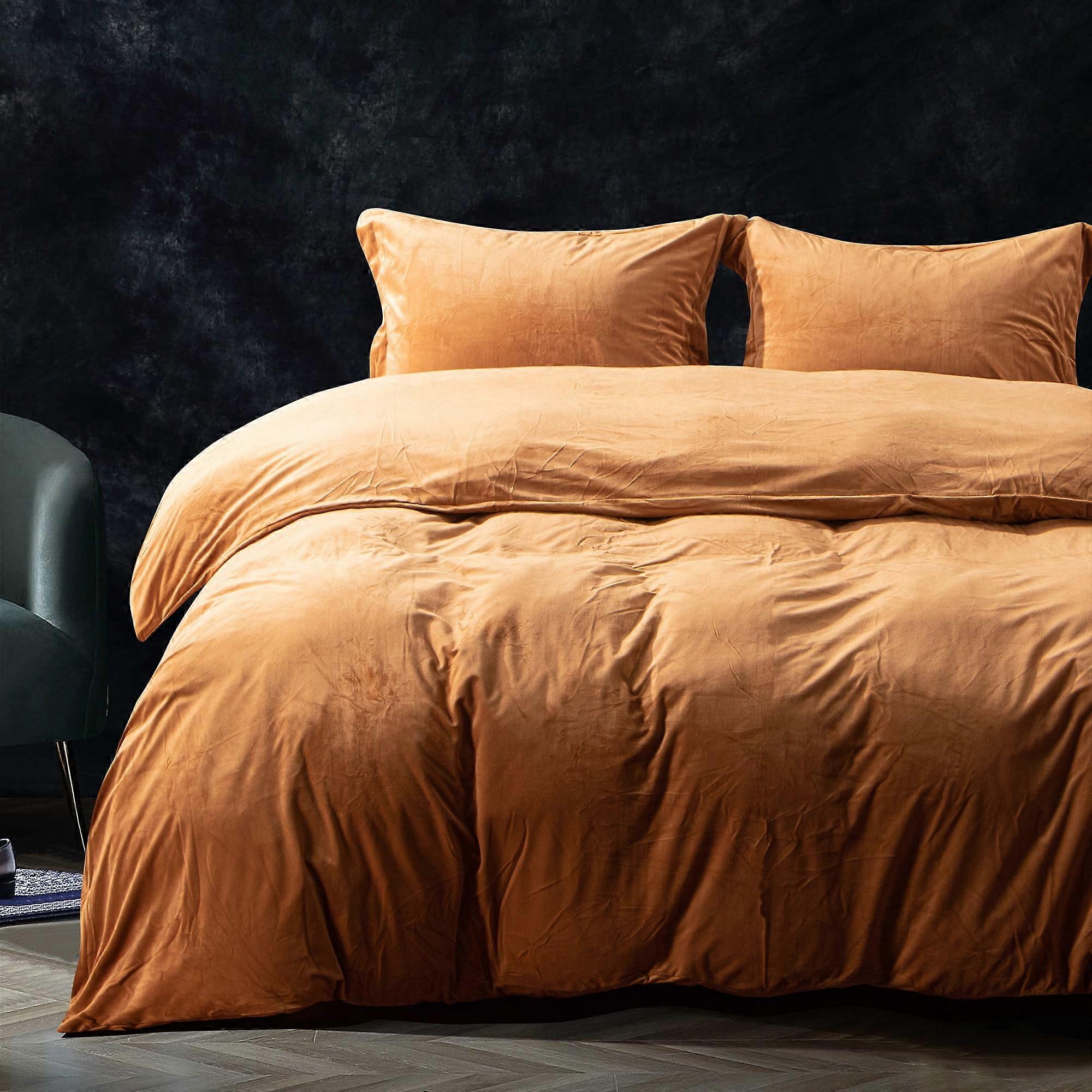 Flxxie Ultra Soft Velvet 3 Pieces Duvet Cover Set with Pillow Shams, King, Camel