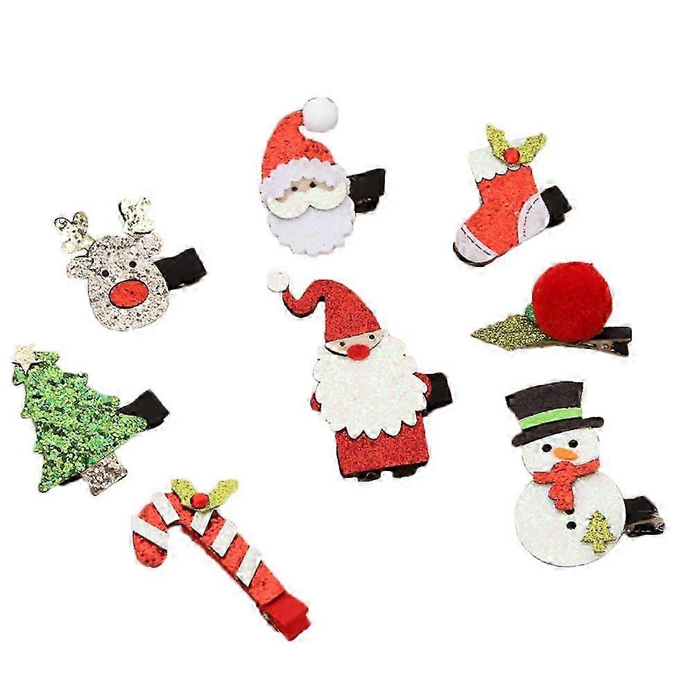 8PCS Christmas Hair Clips Headwear Glitter Santa Head Tree Deer Snowman Sock Candy Cane Barrettes Hair Accessories for PM