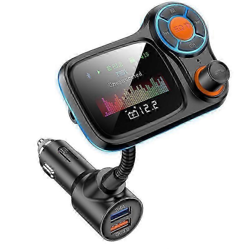 Fm Transmitter Bluetooth 5.0, Car Bluetooth Adapter Wireless Fm Radio Car Kit With 1.77'' Color Screen, Dual Car Charger
