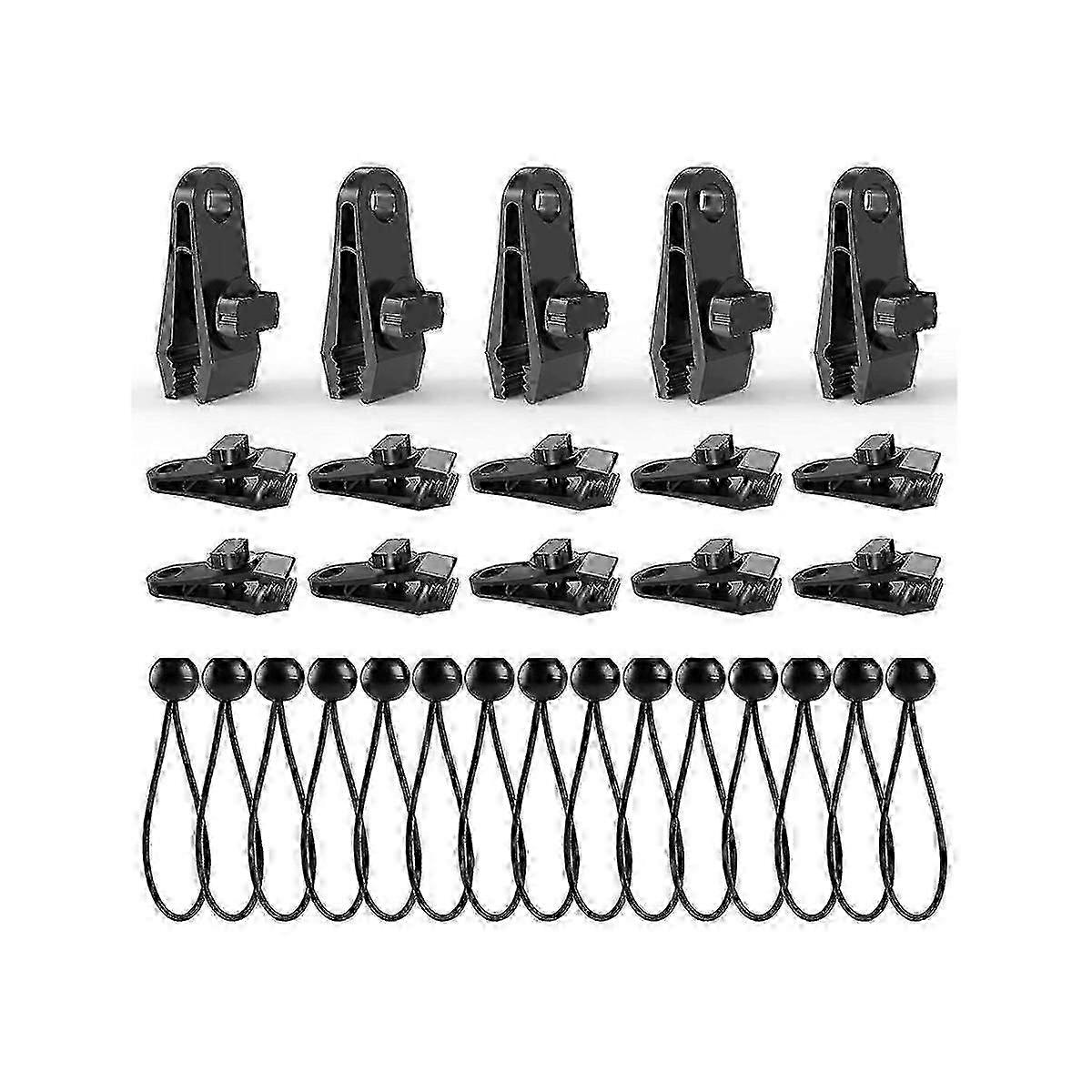 Tarp Clips with Bungee Balls 30 PCS,Tarp Clips Clamp Heavy Duty Lock Grip for Tarp,Pool Cover,RV Aw-2025-ssBlack