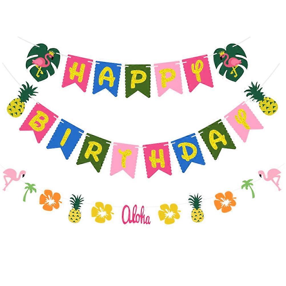 2 Sets Hawaiian Banner Luau Birthday Party Birthday Bunting Garland Flag for Tropical Party Leaf