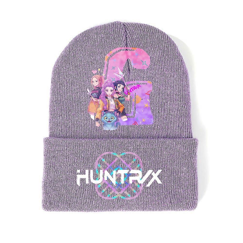 Kpop Demon-Hunting Girl Group Adult Knitted Hat Fashion Rolled-Edge Beanie Printed Bobble Hat Outdoor Kids Winter Cap-G