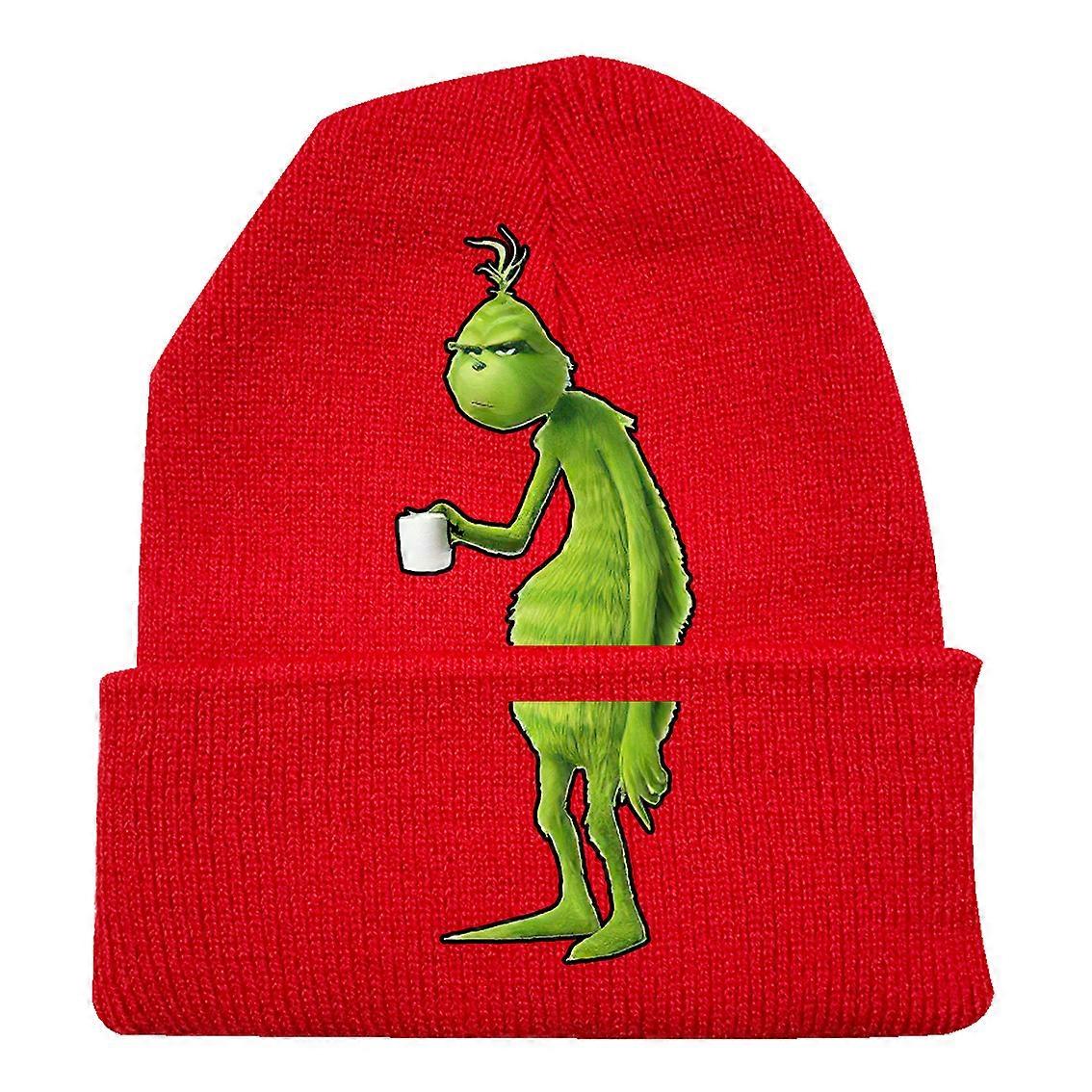 2024 New Christmas Green Grinch Knitted Hat Cosplay Warm Beanie Hat-Red-C