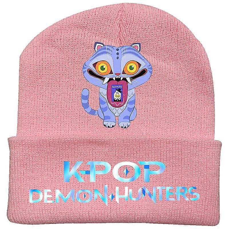 Witch Hunt Group Peripheral Knitted Hat Fashion Curled Beanie Hat Printed Bean Hat Outdoor Cold Hat Adult-Pink-1