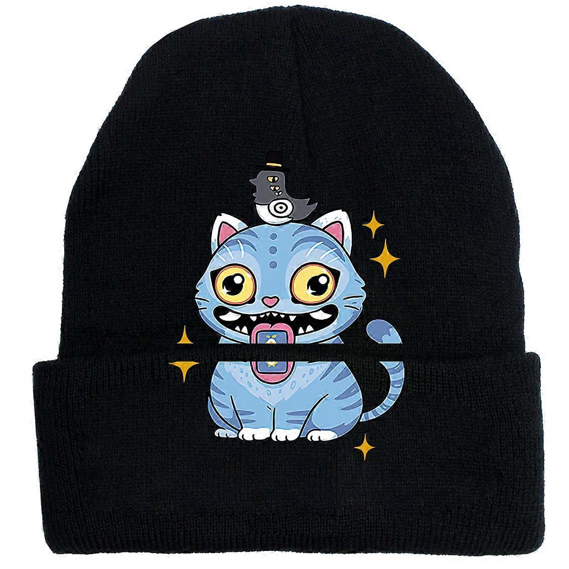 Kpop Demon-Hunting Girl Group Knitted Hat Cute Cartoon Print Wool Hat Outdoor Warm Fleece Hat Student Winter Cap-Black-1