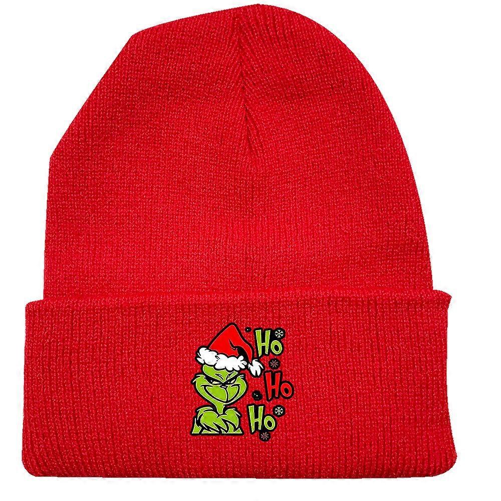New Christmas Grinch Green Furry Hat Cosplay Anime Merchandise Couple Winter Beanie Knit Hat-red-A