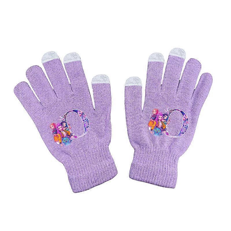 Kpop Demon-Hunting Girl Group Knitted Cartoon Letter Print Autumn And Winter Hat, Outdoor Fleece Beanie, Knit Hat, Gloves-Gloves-O
