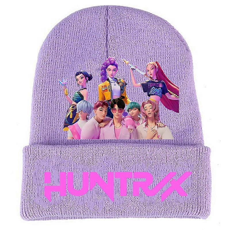 Kpop Demon Hunting Girl Group Merchandise Knitted Hat, Autumn And Winter Adult Yarn Hat, Outdoor Warm Wool Hat, Couples Hat-Purple - 5