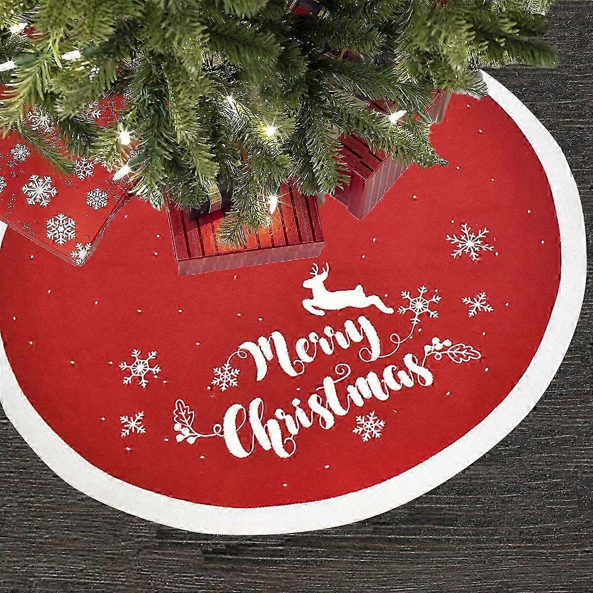 Christmas Tree Skirt Knitted Tree Skirt Apron Christmas Tree Skirt Knitted Snowflake Deer Embroidery Christmas Tree Skirt Holiday One SizeRed SZRH