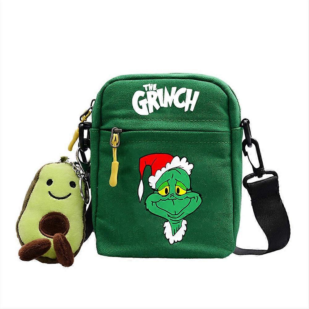 Christmas Grinch Green Forest Monster Small Square Bag New Cute Shoulder Bag Colorful Simple Canvas Zipper Printed Crossbody-Green-4