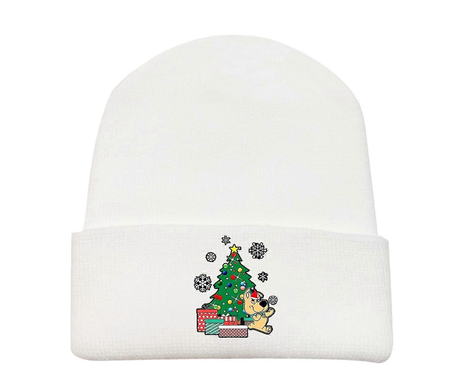 New Knitted Hat, Christmas Pattern Printed Fleece Hat, Outdoor Warm Winter Hat, Adult Wool Hat-white-D