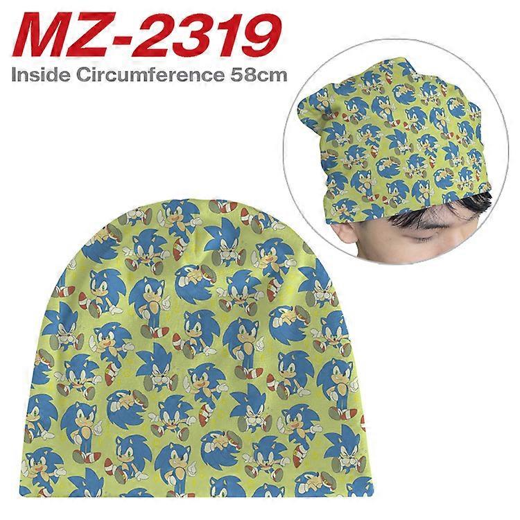 Sonic-Themed Printed Plush Hoodie Hat, Warm Hat, Cartoon Knitted Hat, Cosplay Hat-MZ-2319