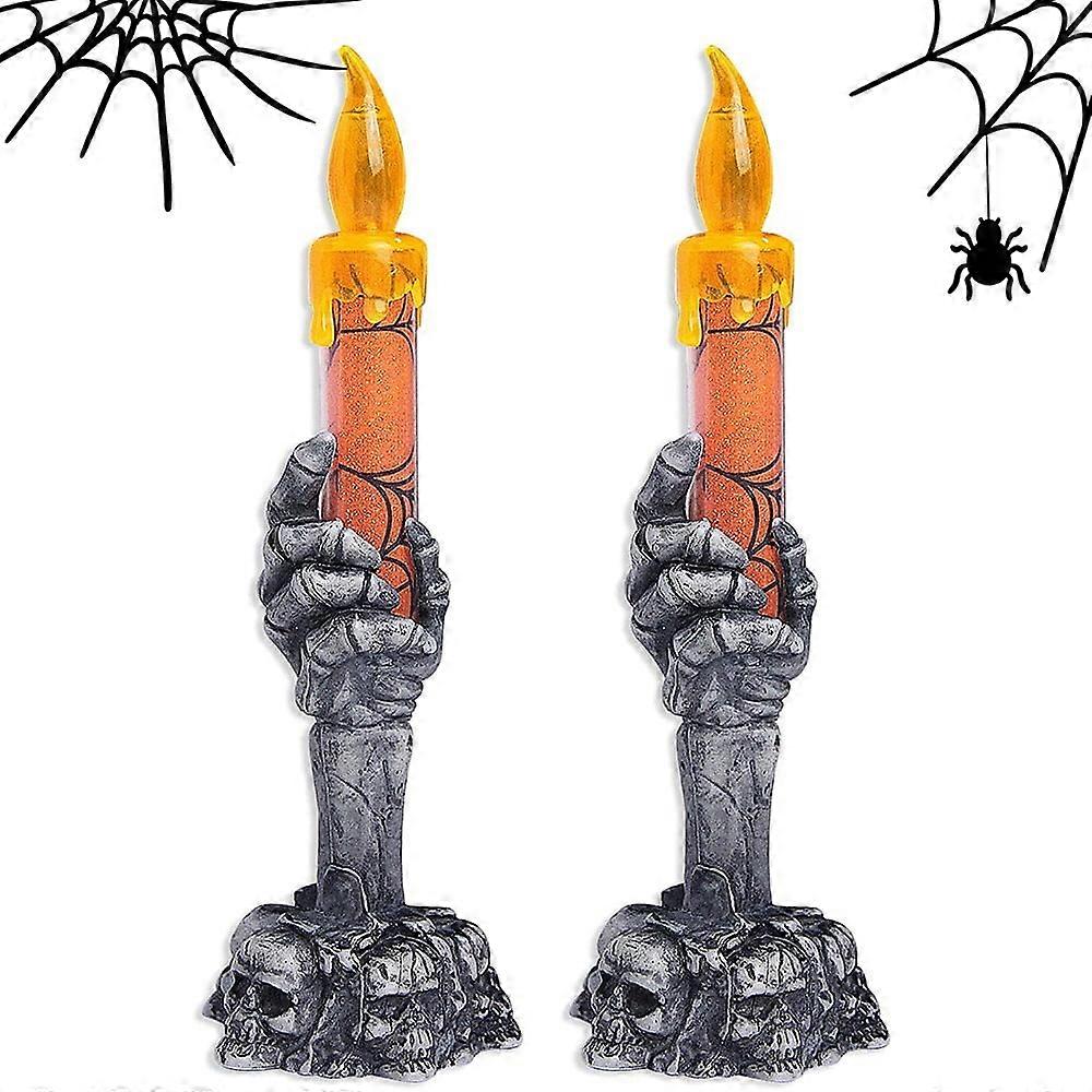 2 Pack Skeleton Hand Candle Lights, Compatible with Halloween Skull Candle Holder Decor, Flameless Lamp for Home, Party, Haunted House