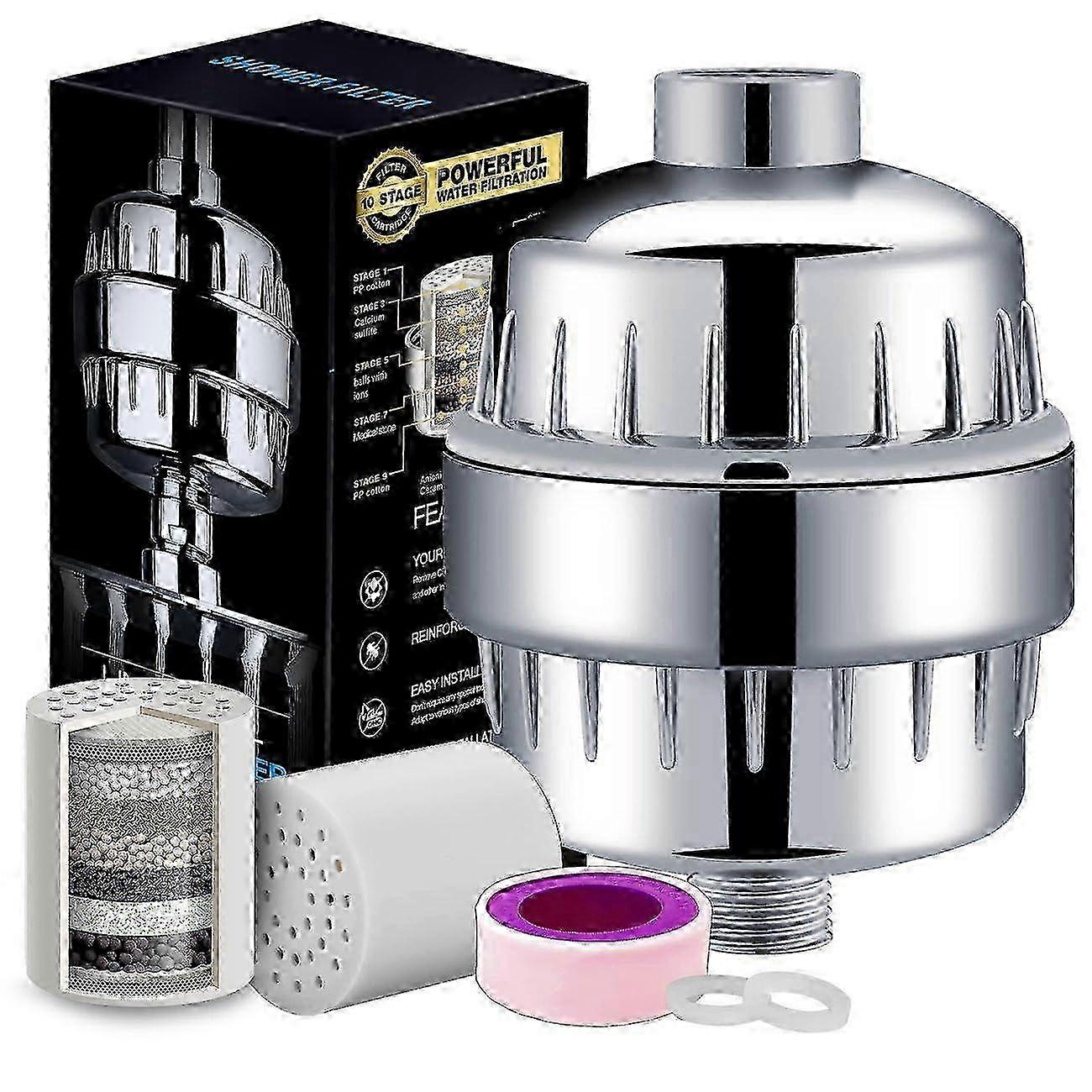 Optimized Premium 10-Stage Shower Head Filter for Chlorine & Fluoride Removal for Dry Skin Relief - Best Seller