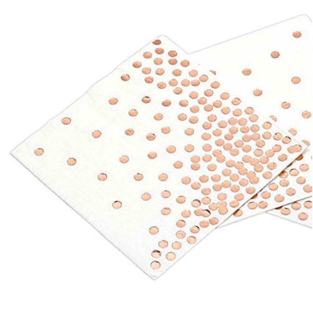 Luncheon Napkins 6.5" White with Rose Gold Dots, 50/Pack, Sparkly Foil, for Wedding, Party, Birthday, Lunch, Dinner