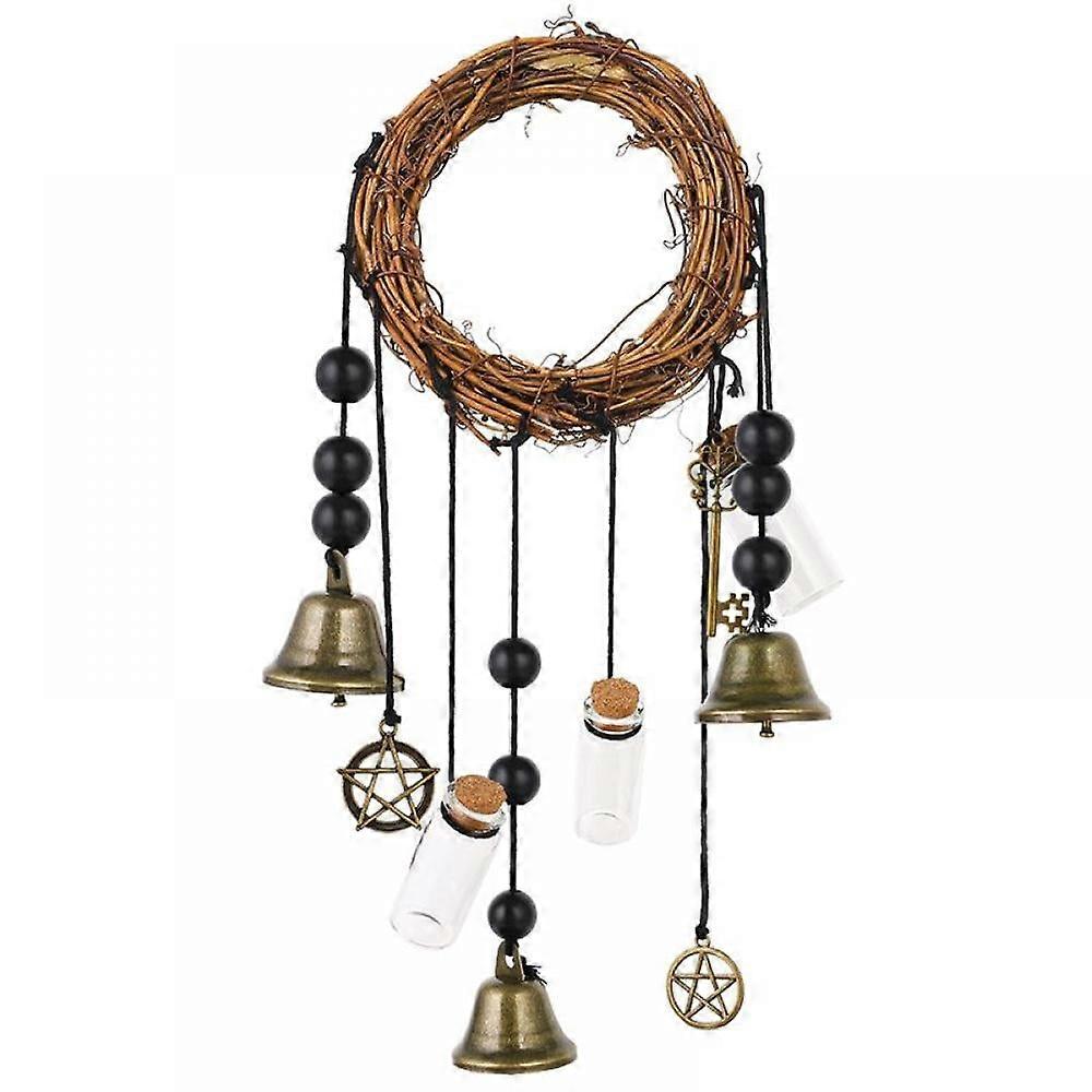 Witch Bells Protection Door Hangers, Witch Wind Chimes Wreath, Handmade Hanging Witch Bells for Home Door, Doorknob, Witchcraft Decor