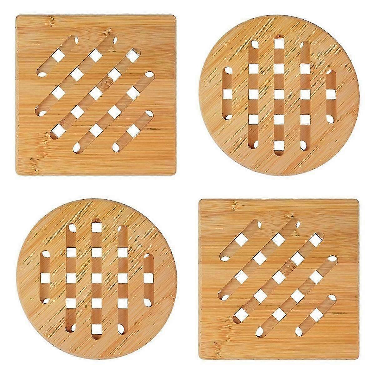 Bamboo Pot Coasters,Heat-Resistant Bamboo Place Mats, Square and Round Pot Coasters Made of Wood, fBamboo Color SZRH