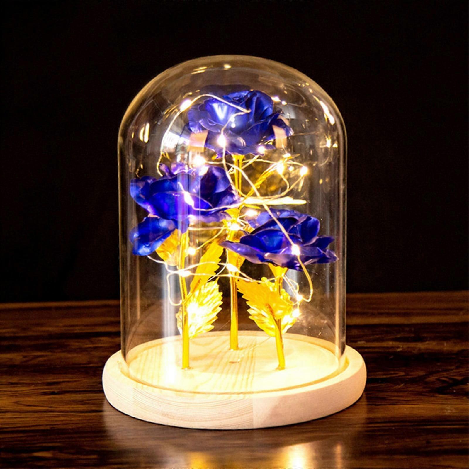 Yakbaofuo 3 Gold Foil Roses Glass Lamp, LED Ornament Light, Creative Gift for Valentine's Day, Christmas, Halloween, Desktop Decor
