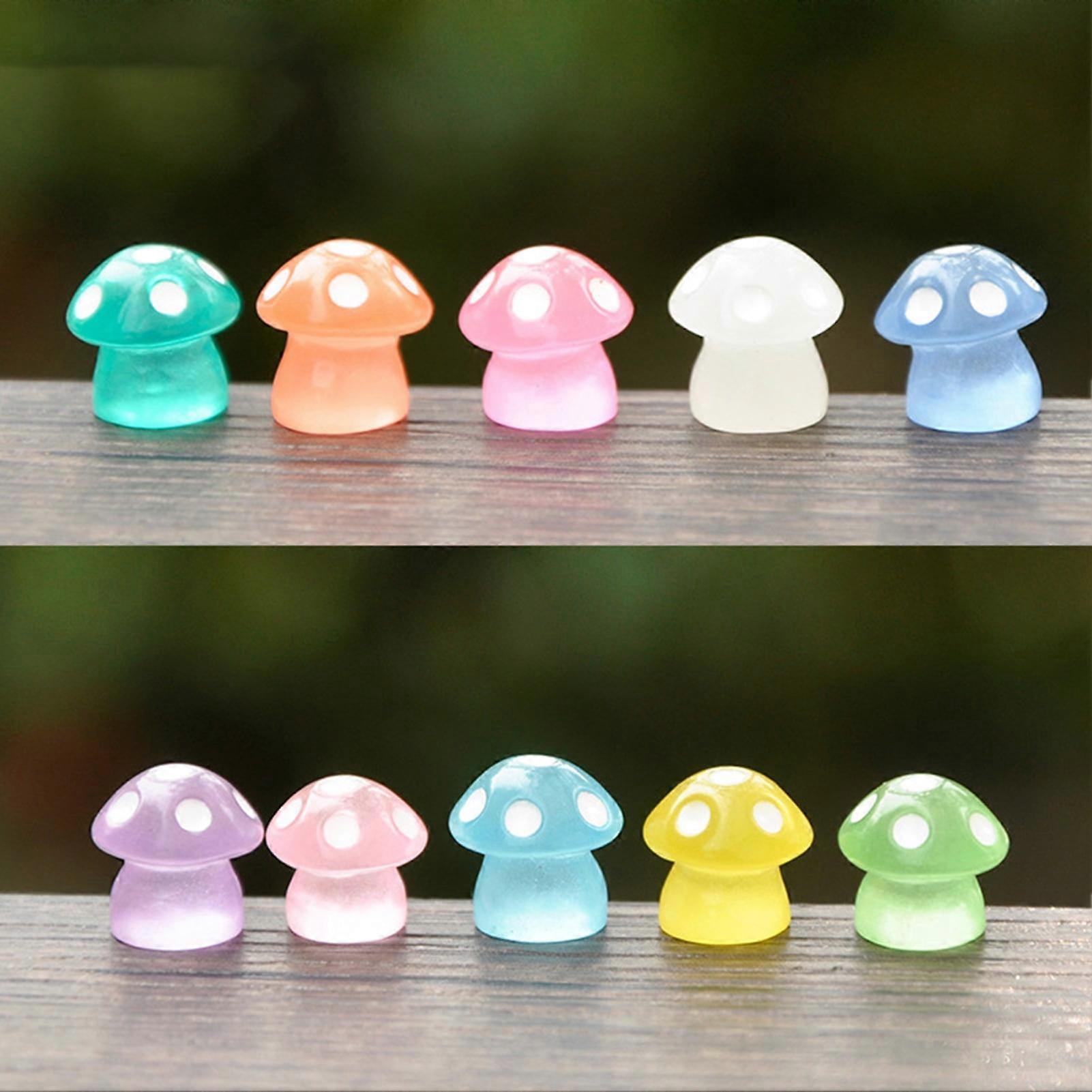 Hesroicy 10Pcs Glow in The Dark Mushroom Statue - Adorable 5-dot Design, Resin Luminous Mini Mushroom Statue, Desk Ornament, Home Decor
