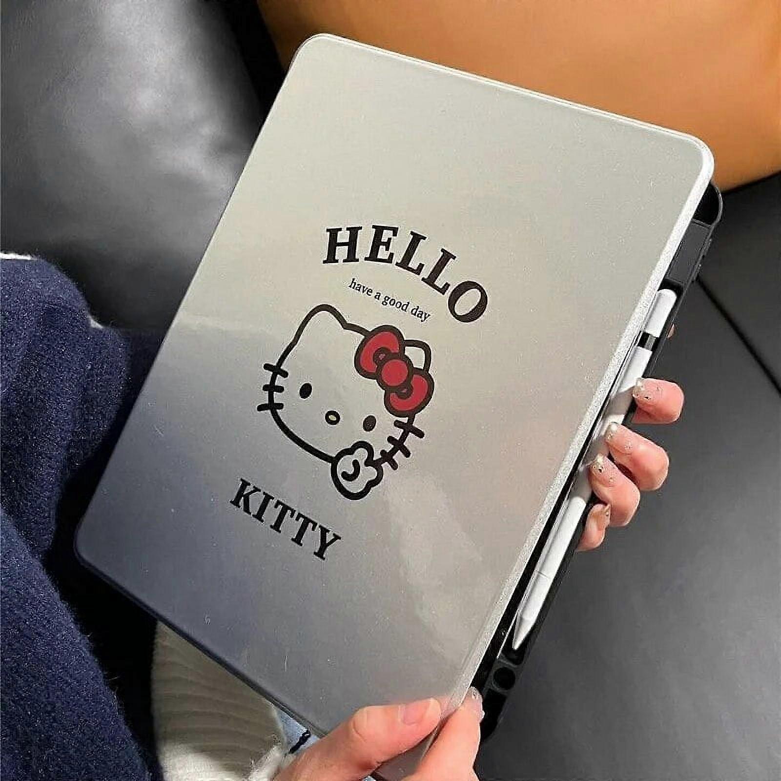 Sanrio Hello Kitty Kawaii Silvery Case compatible with iPad, Anti-Bending Protective Cover for iPad Pro 11"/Air 5/4/Mini 6/10th/9.7", Cute Girl Gift