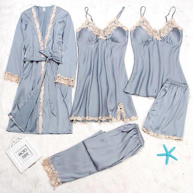 5PCS Women Ladies Satin Silk Lace Pajamas Set Sexy Lingerie Sleepwear Nightwear