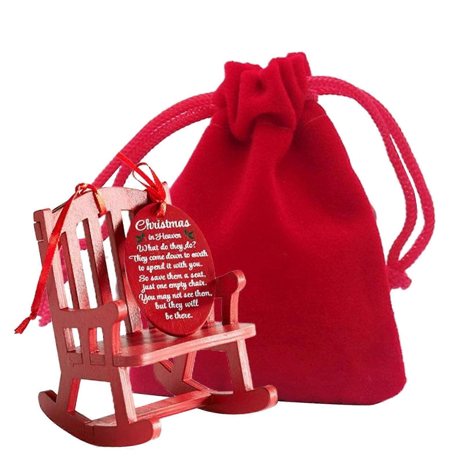 Generic Christmas Memorial Ornament, 1 Pcs Red Mini Wooden Rocking Chair with Hangtag & Bag, compatible with Xmas Tree Decor