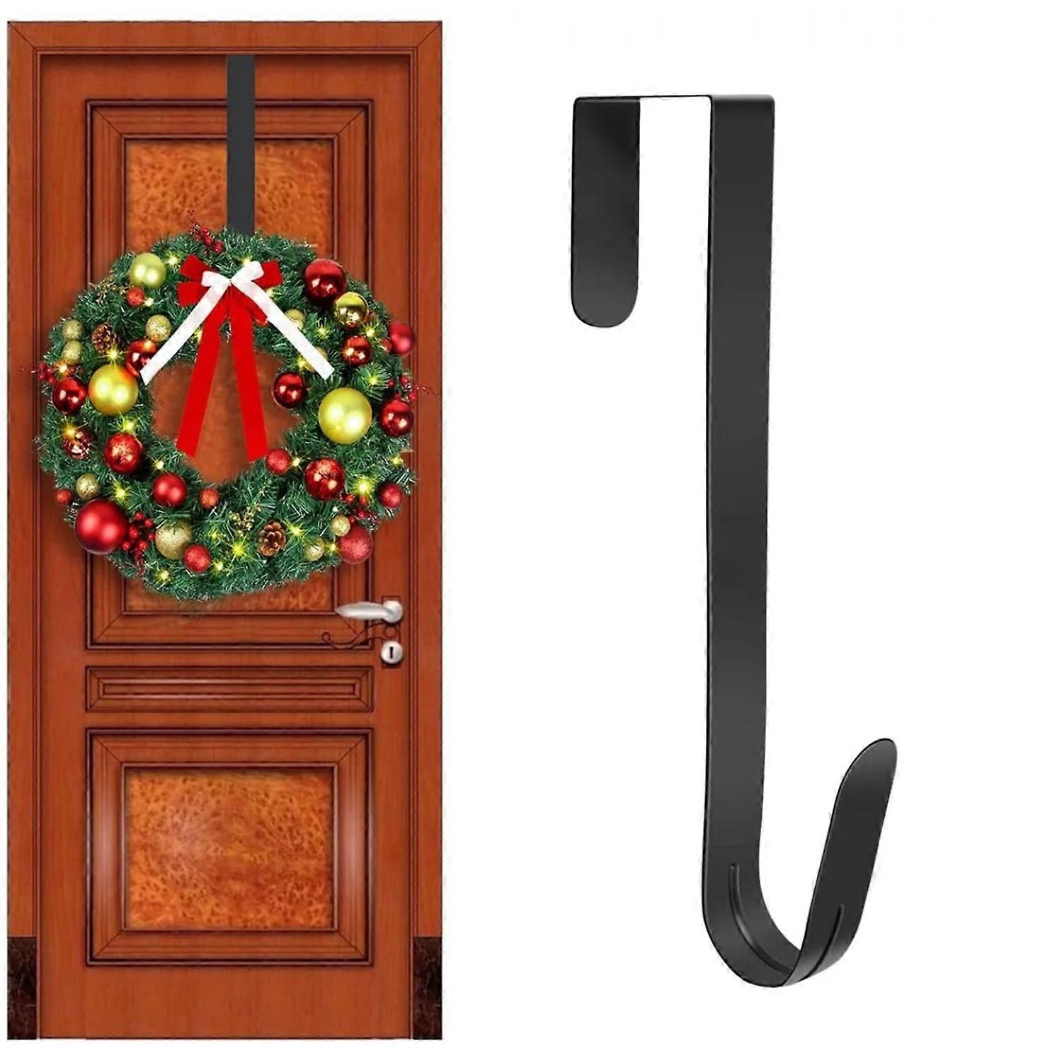 1Pc Adjustable Christmas Wreath Hanger for Front Door, 15inch Outdoor Wreath Hook, Over The Door Wreath Hanger for Xmas, Black