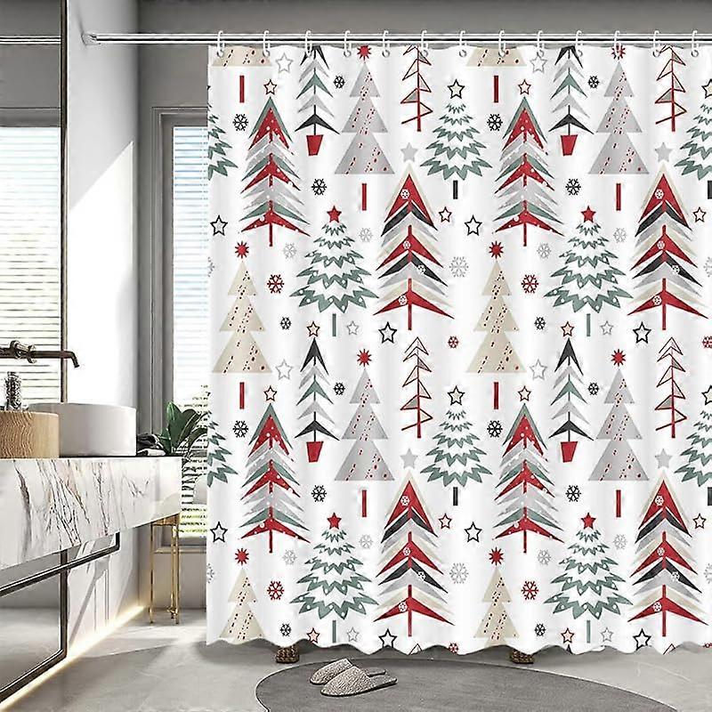 Christmas Shower Curtain with Xmas Tree & Snowflake Pattern, 72x72 in, Washable Durable Fabric for Bathroom Decor