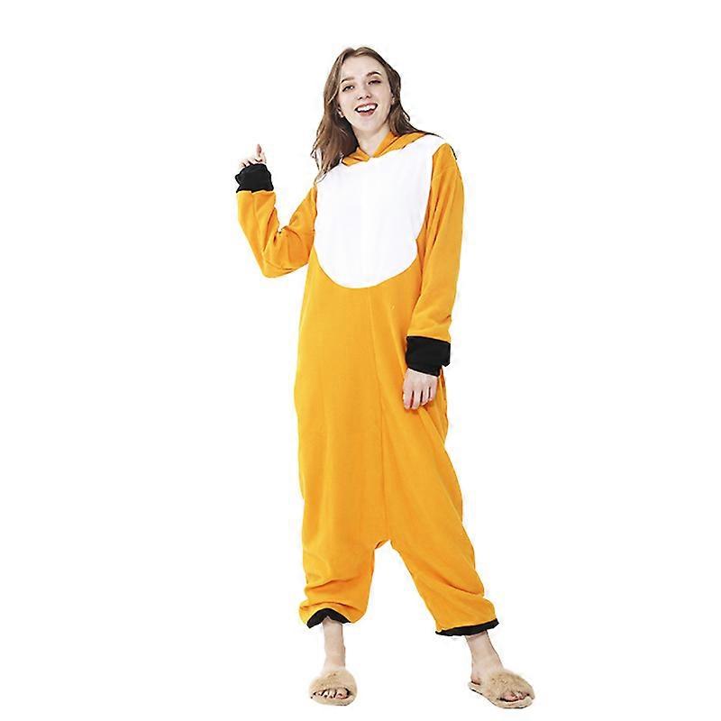 Orange fox animal one-piece pajamas couple style men and women Halloween party slightly dyed