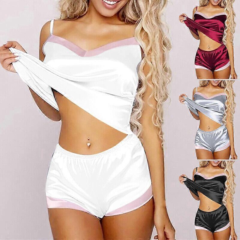Women Satin Silk Lace Camisole Vest Shorts Lingerie Pajamas Set Nightwears