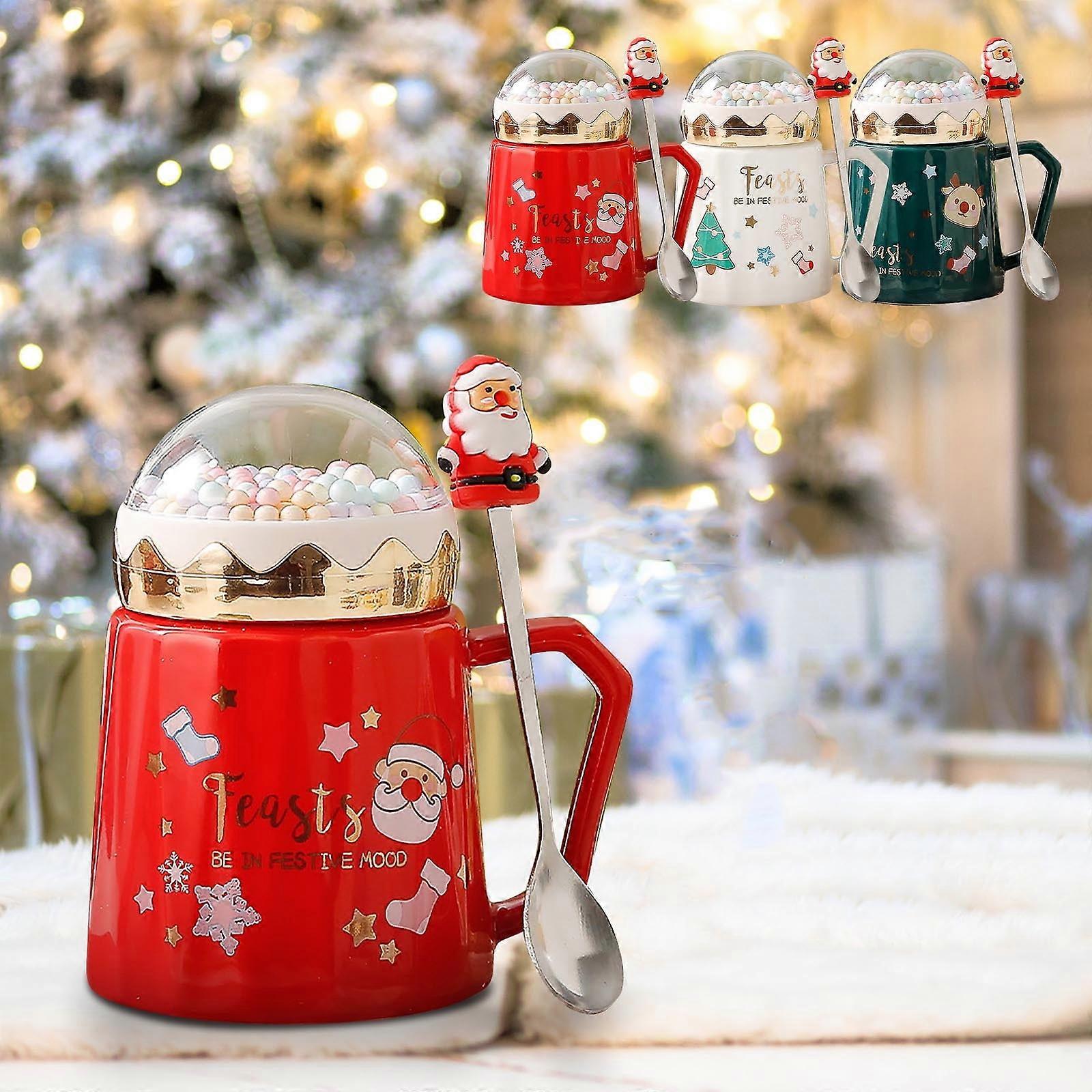 Cyber Monday Deals 2024: Viflosae Christmas Mug Ceramic Cup with Lid, Compatible with Office Use, Coffee Tea Milk Cup, Indoor Decor Gift for Women