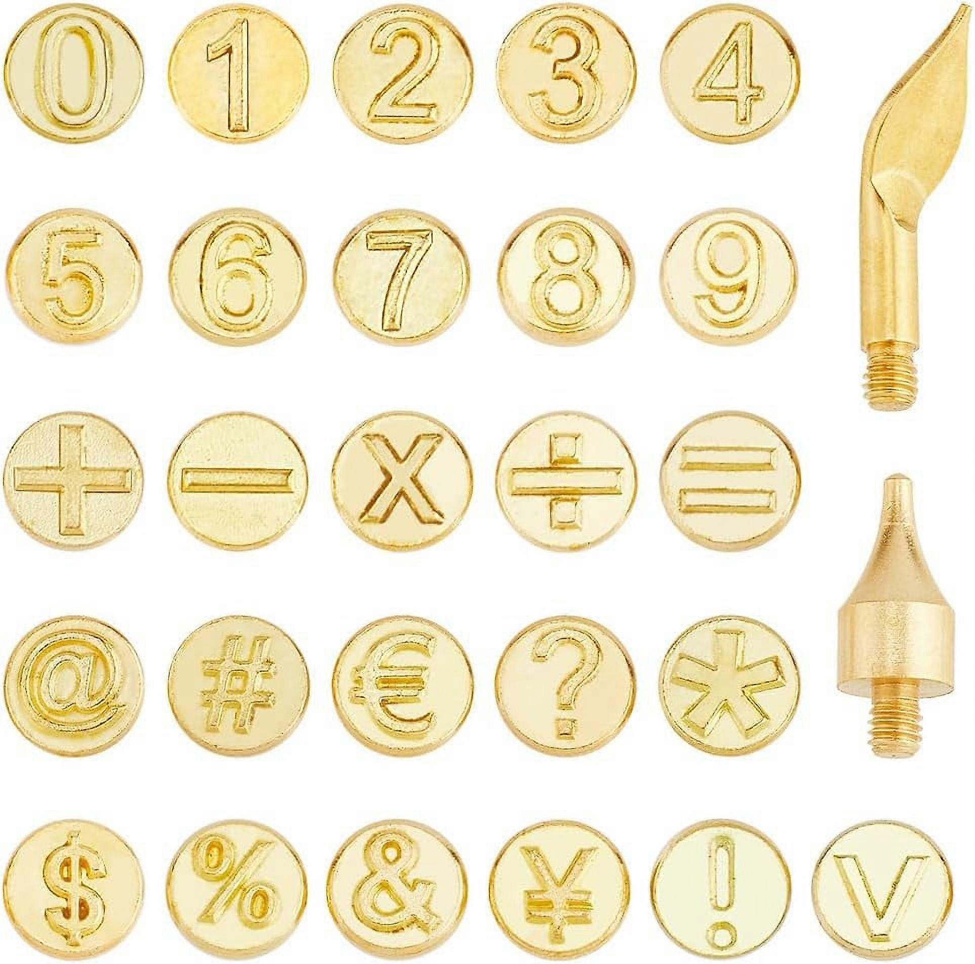 28Pcs Wood Burning Carving Number Pattern Carving Tool Golden Brass Soldering Iron Wood Burning Tips Embossing Burning Tips Mold Carving Set DIY