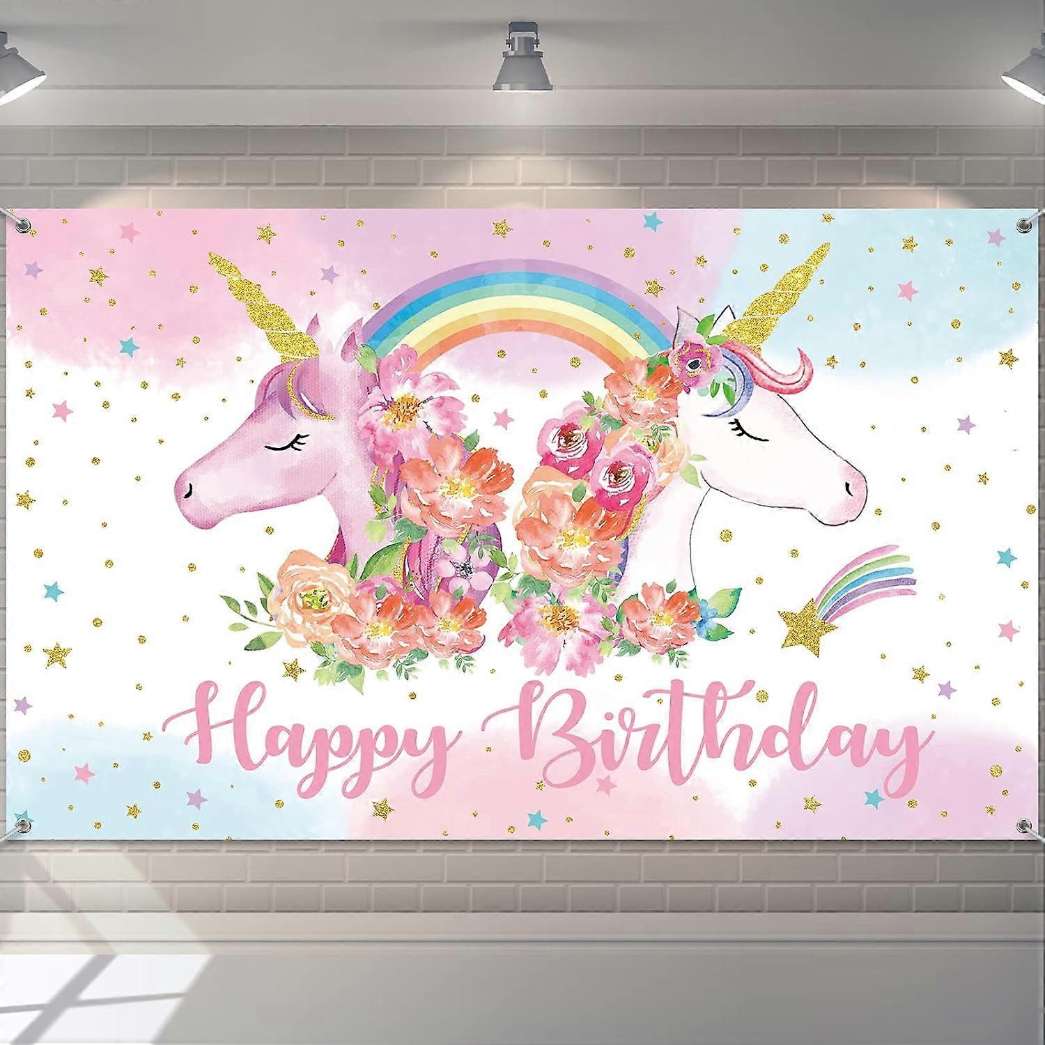 Cute Rainbow Unicorn Backdrop 70.8 x 43.3 inch for Girls Birthday Party, Unicorn Party Decorations, Children's Party Background