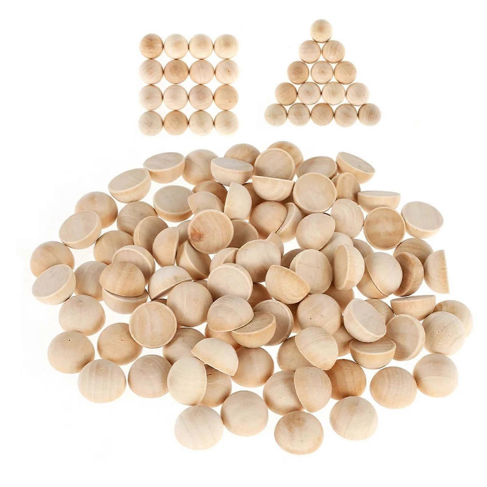 GUOOL 100 Pieces Unfinished Half Wood Beads Wood Half Beads Unpainted Wooden Split Balls for Home Decor Kids Arts Crafting Painting 1.5cmx0.75cm