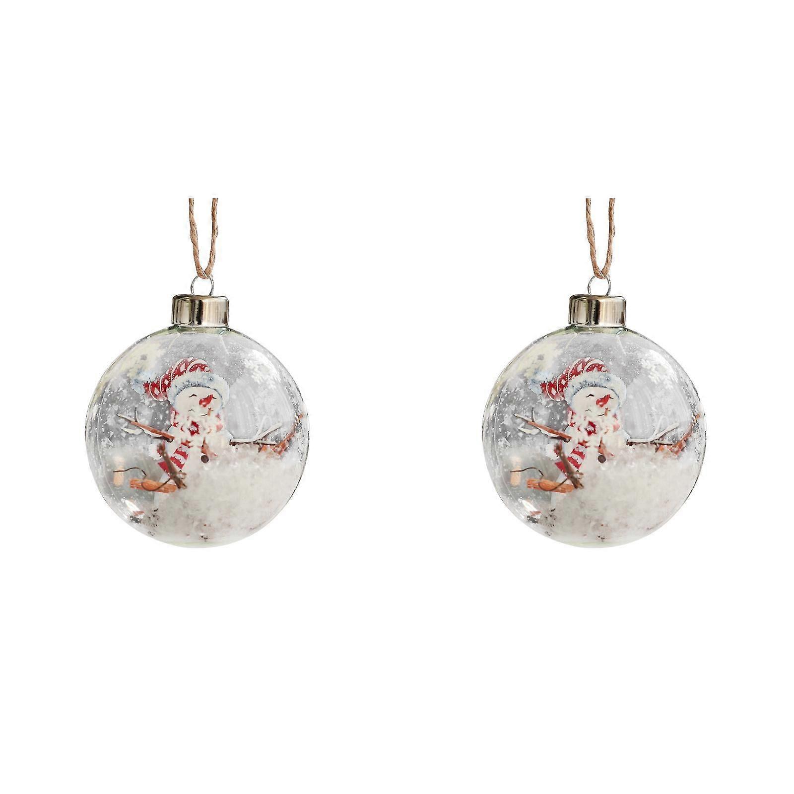 8cm/3in 9cm/3.5in Christmas Decoration Transparent Glass Ball Inlaid With Brick Christmas Ball White Snowman Pentagrams Christmas Tree Pendant *2PCS