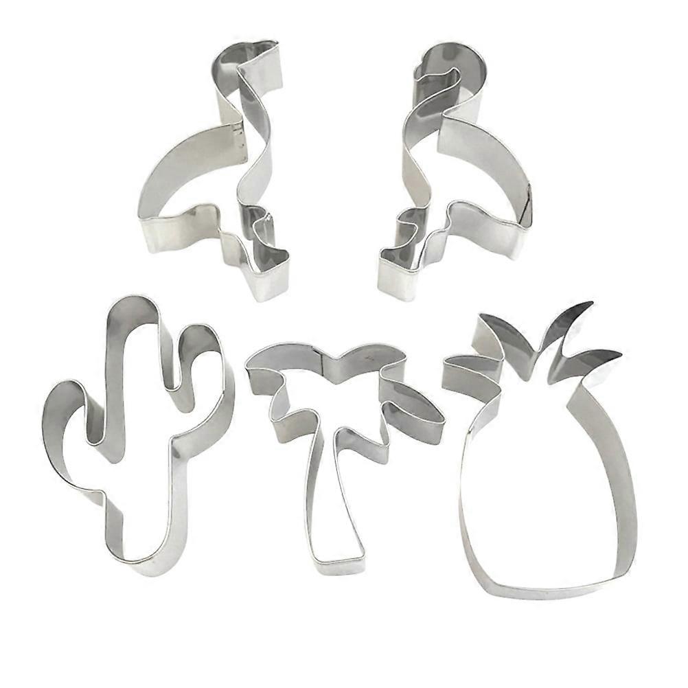 5PCS Stainless Steel Cookie Cutters Set DIY Biscuit Baking Tools Flamingo Cactus Pineapple Tree Shapes Mold for Fondant Dough Candy Pastry
