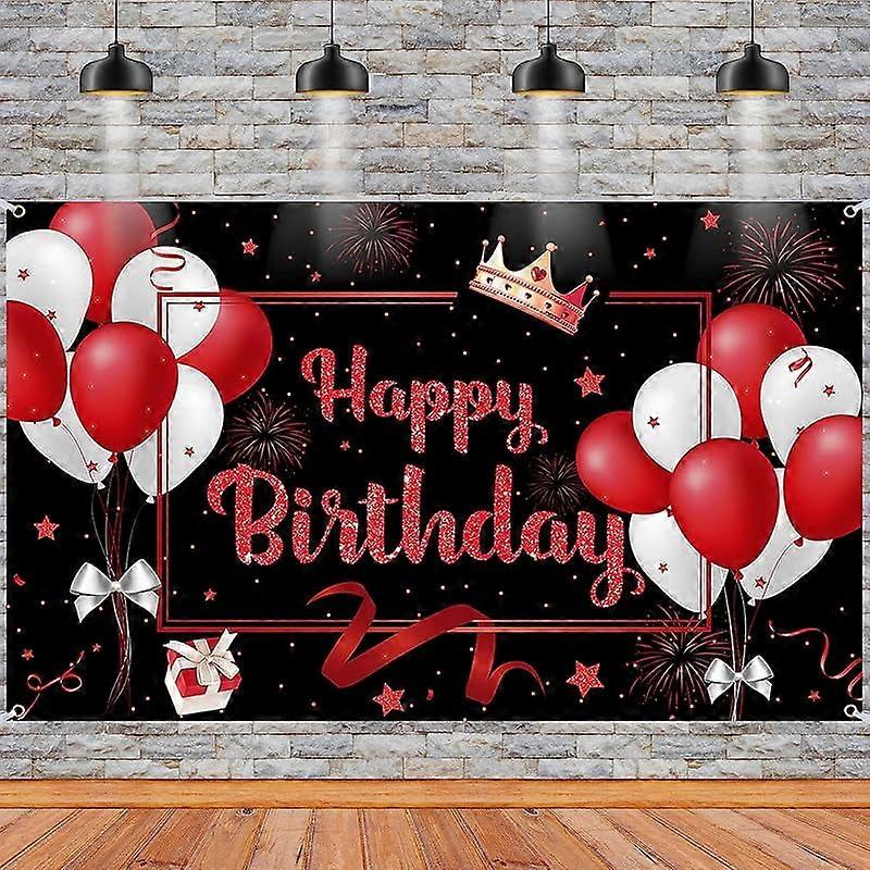 Purple Happy Birthday Banner - Shiny Purple, Black & Gold Party Decor, 71x44Inch Backdrop for Women Girls, Photo Booth Background