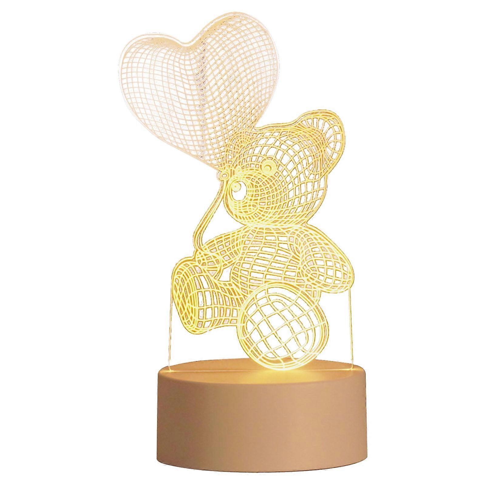 Acrylic 3D Night Light Love Cartoon Bear LED Table Lamp - USB Decor for Valentines Day