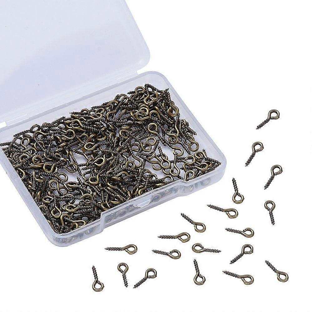 1Box Iron Screw Eye Pin Peg Bails For Half Drilled Beads Antique Bronze 10x4x1mm Hole: 2mm 300pcs/box