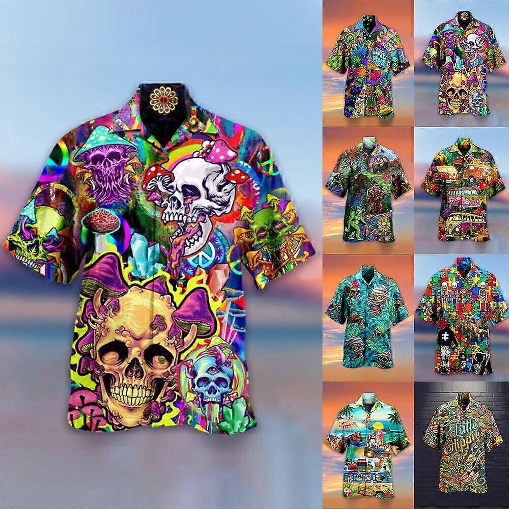 Mens Aloha Hawaiian Beach Shirts Skull Halloween Party Short Sleeve Fancy Dress