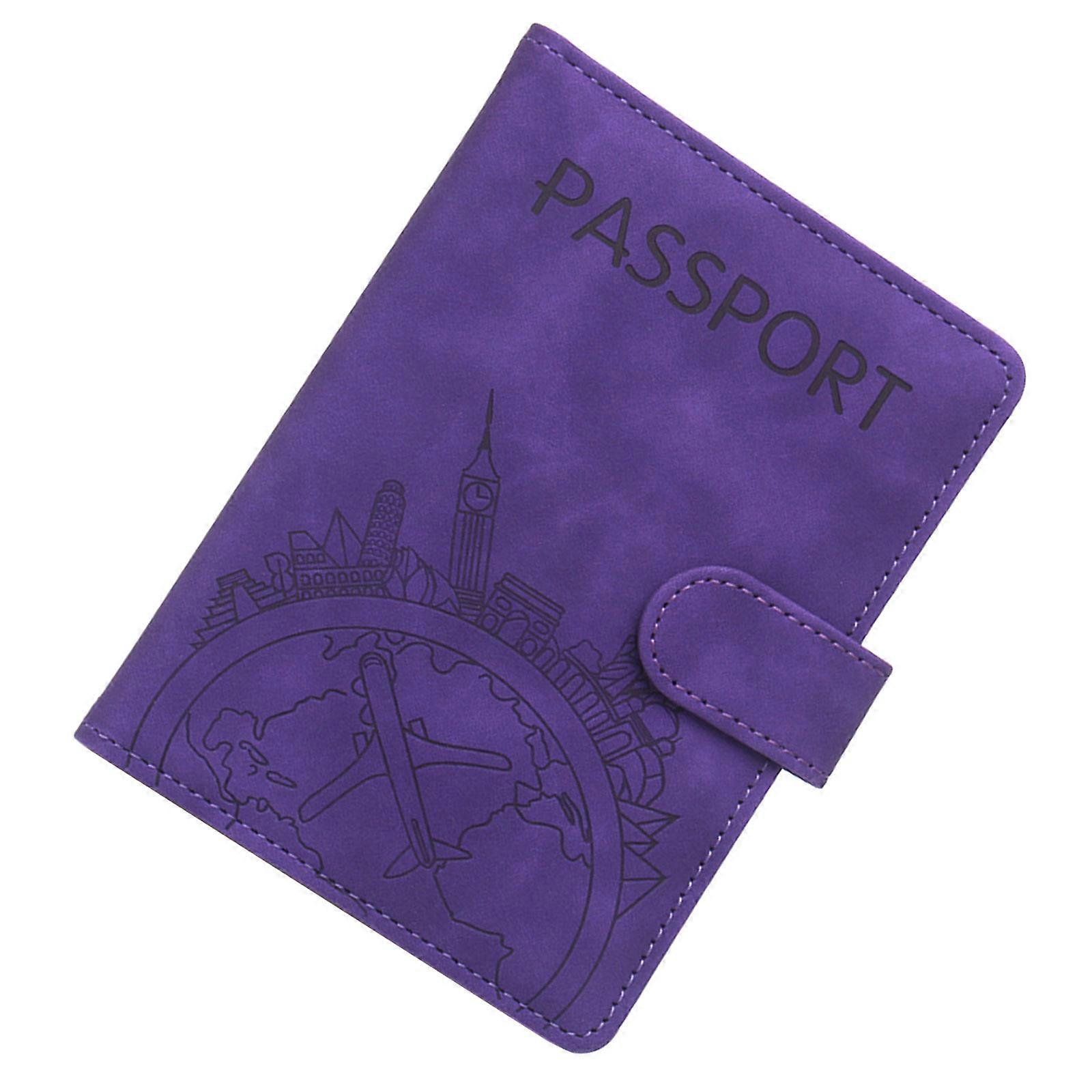 Passport Holder Cover PU Leather Travel Wallet Case Organisers for Passport Business Cards Credit Cards Boarding Passes Purple
