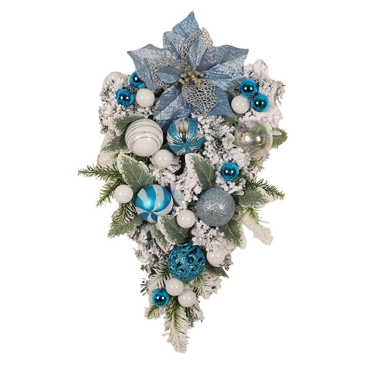 Merry Christmas Tree Door Sign, Xmas Holiday Farmhouse Wood Hanger Outdoor Porch Decor, Rustic Wreath with Plaid Bow & Red Berries