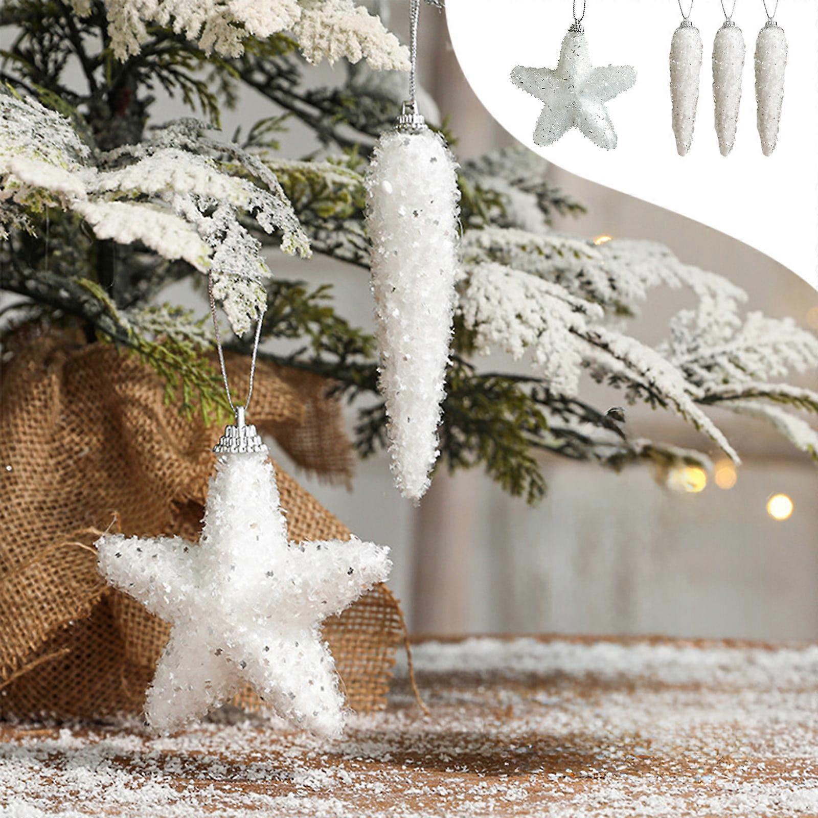 Donemore Christmas Tree Baubles, White Foam Ball Ornaments with Glitter Gift Package & Built-in Lanyard, Compatible with Xmas Decorations