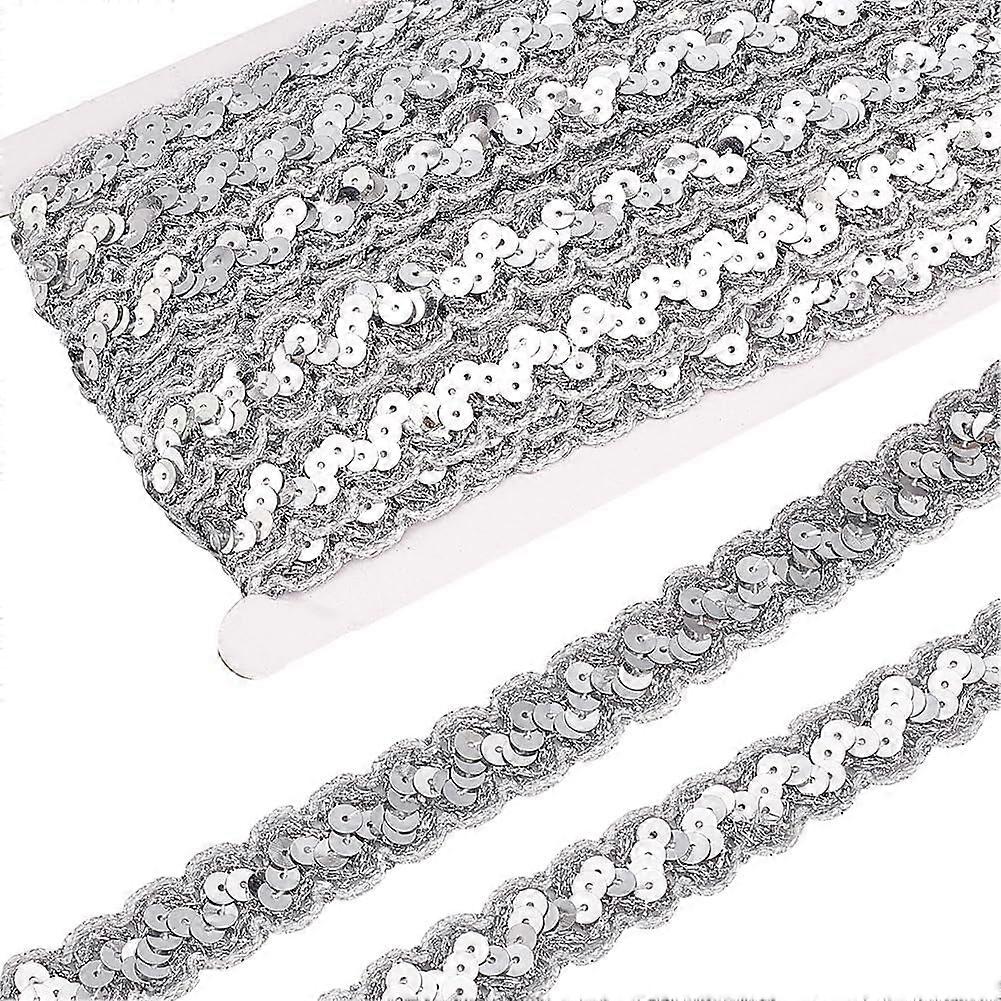 14 Yards Metallic Lace Trim 3/4 Inch Silver Sparkle Wave Lace Trim Sewing Lace Fabric Trim Crochet Lace Ribbon with Paillette for Wedding Applique Dress Bridal Curtain Slipcover DIY DIY Metallic Wave Trim: package includes 1pc of sparkle wave lace trim, in classic silver, with paillette on the surface, features sparkle wave lace trim, delicate craft, fashion and unique, suitable for Hanfu decoration. Quality Material: the sewing lace is made of polyester, good in shape, soft in touches; smooth and soft; washable and durable, can serve you for a long time. Great choice for dressmaker and costume lover. Size Details: the trim is about 19mm wide, 0.5mm thick, 14.2 yards(13m) in total length, can be cutted to any length you want, widely used for costume, clothing decoration, DIY crafts making and upholstery embellishment. Nice added decoration. Costume Applique: simple and classic style is perfect for DIY tiaras, headbands, garters, hat, shoes, neckline, bodice, purses and fashion apparel. Flair up show costumes, trousers, cocktail dress, cosplay projects instantly. Wide Application: the ribbon be used for basket making, home decor, wallpaper border, gift packaging, dress decoration, upholstery decor such as bedding, curtain, sofa and lampshades and etc. Applicable on silk, lace, jeans and other fabric.