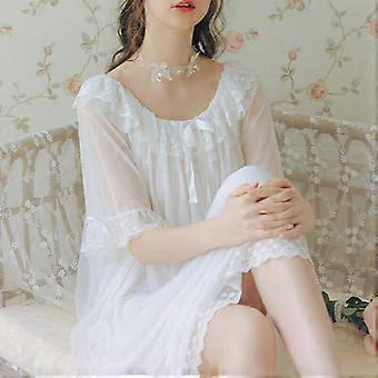 Women Lace Nightdress Ruffle Lolita Sleepwear Ladies Short Sleeve Pajamas