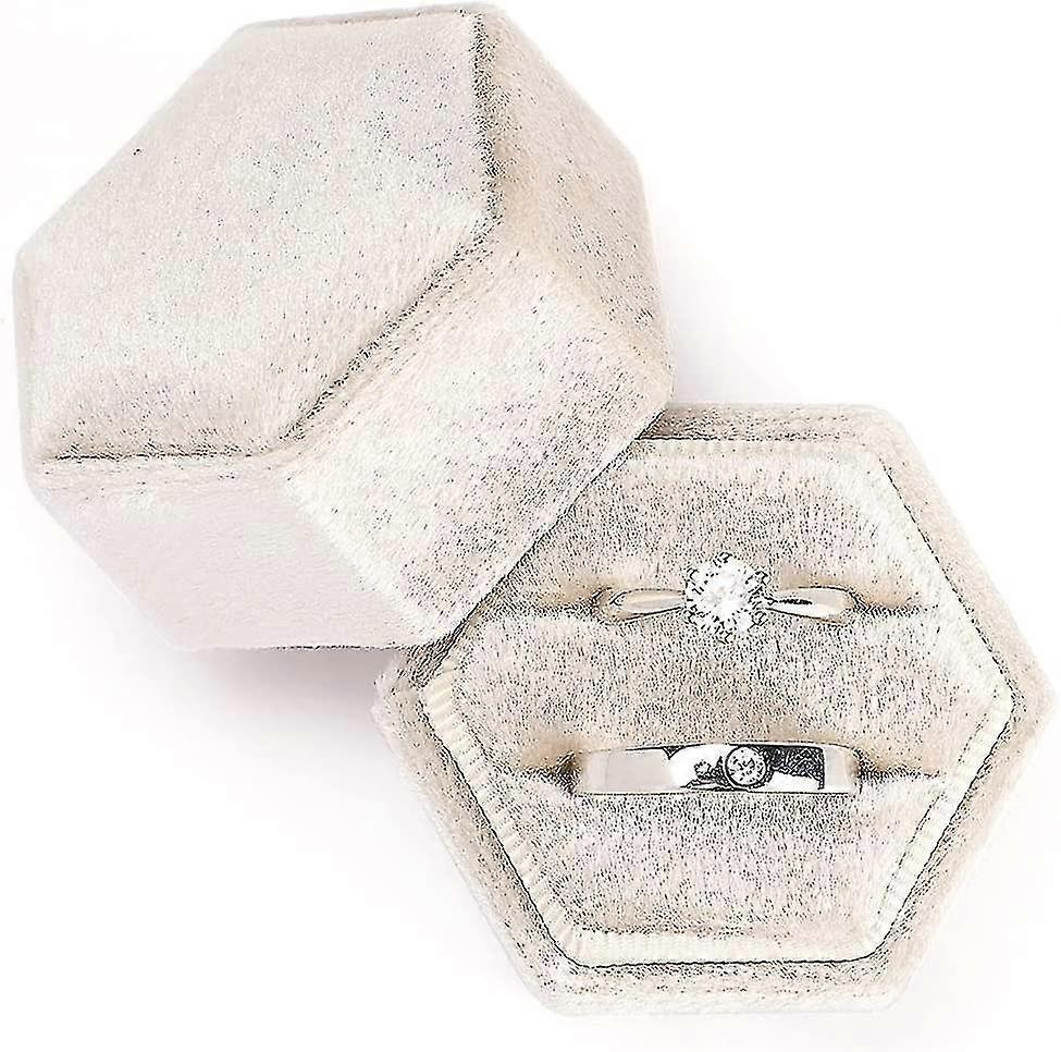 Optimized Velvet Jewelry Ring Box - Vintage Hexagon Premium with Detachable Lid