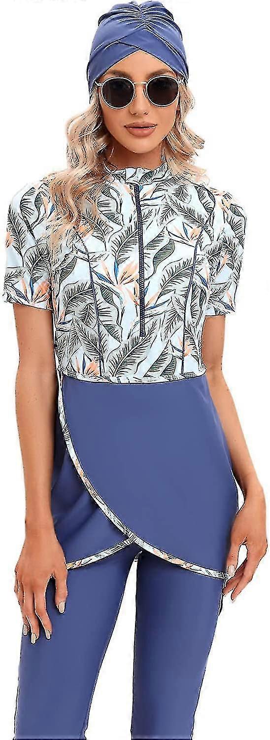 Women's Modest Swimwear: 3-Piece Swimsuits with Short Sleeve, Zipper Front & Hijab - Islamic Muslim Swimsuits - S-4XL - Xinmu Collection (New Arrival)