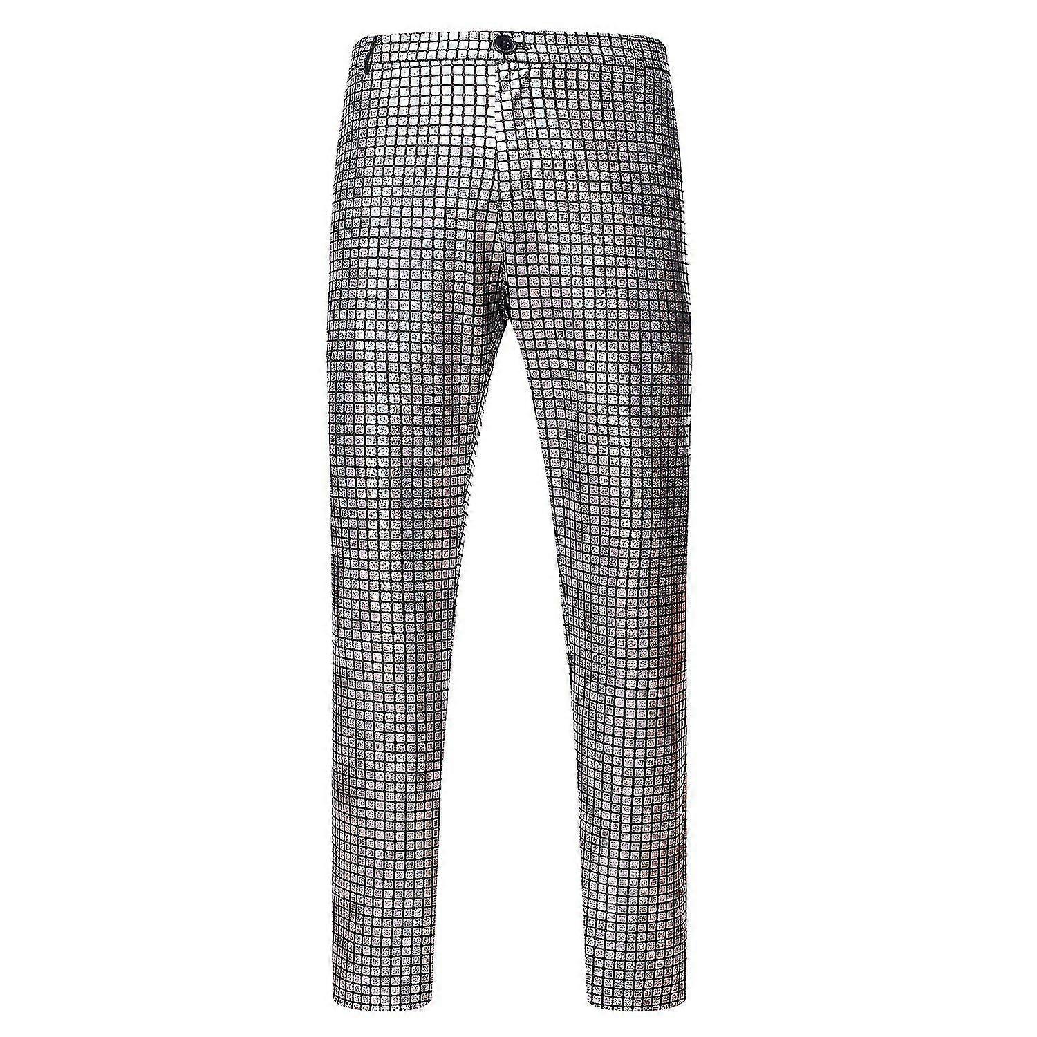 Metallic paint Fabric or Mild elastic fabric or Thin or Windproof Shining Party Clothes or Night Club Wear or Halloween Christmas Show or Dance or Disco or Performance or stage clothes for singers Suit Pants Cut or Slim Fit or Straight or Zipper Fly closure or Side slash pockets or double-welt back pockets Mild Hand wash(Washed with cold water)