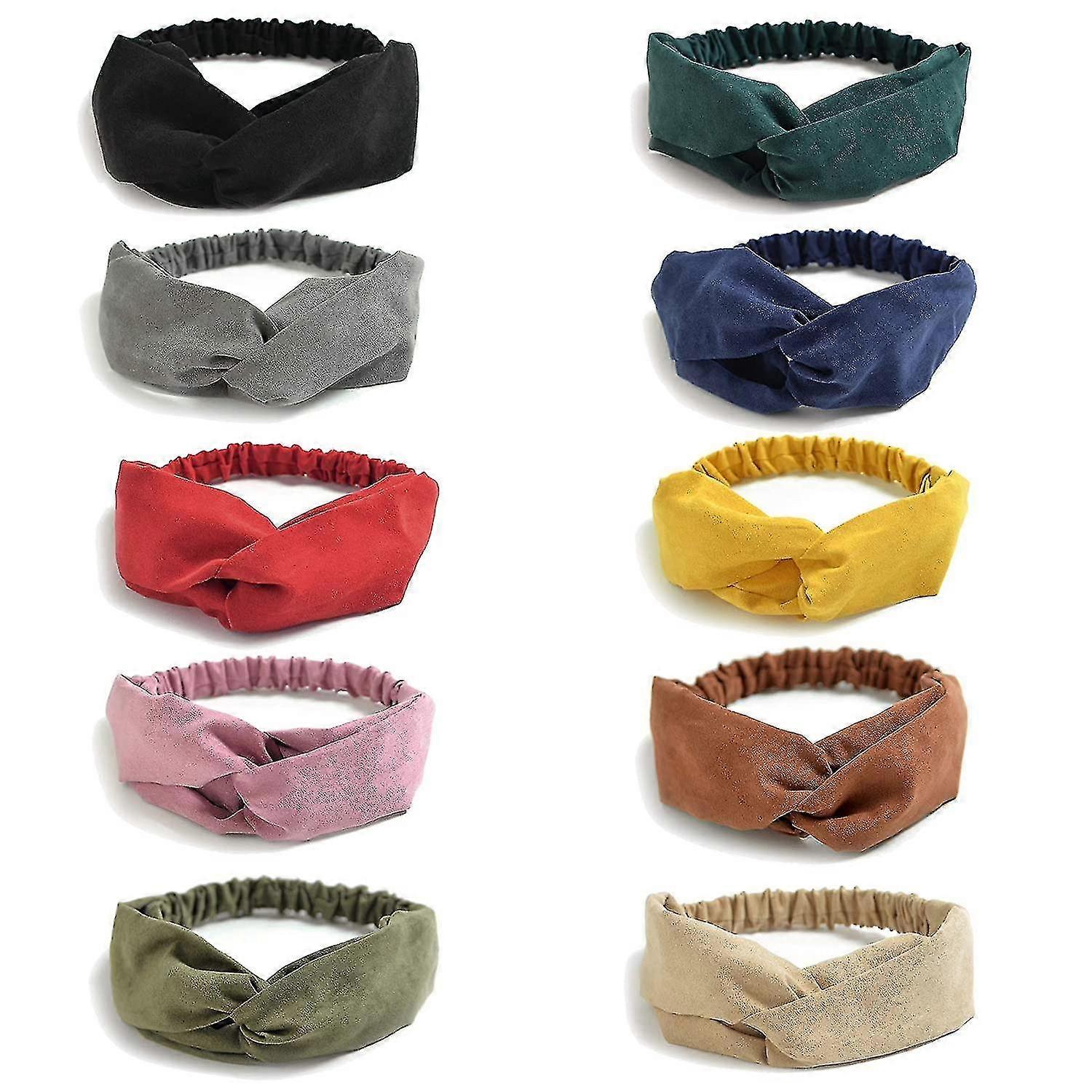 Improved 10-Pack of Multicolor Stretchy Headbands for Women - Lightweight, Elastic Exercise Accessories